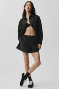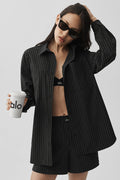 Add this button down to any outfit to instantly level up your look. It’s oversized, slightly boxy, and features a classic collar. The lightweight feel makes it ideal for layering over a sports bra or tank, and the structured fit is buttoned-up enough for the office or a night out. Stripe right and pair it with the matching Pinstripe Daylight Boxer Short.