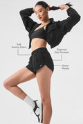 Sporty and sweet at the same time, these shorts are exactly what your closet is craving. Made from a slightly swishy, slightly stretchy fabric, they have ripstop panels down the sides and a sheer panel in back for extra style points. Peep the versatile elastic waist (sling it low or high) and the zippered side pockets (prime for holding a hair tie or credit card). And one last thing—there’s a coordinating Playmaker Jacket, should you want to finish the fit.