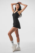 Practice-perfect and street-sweet — the Airbrush Real Dress is a game changer. Made in soft & smooth signature Airbrush fabric, it has a supportive built-in short and shelf bra, V-neck, racerback and a seam at the waist for the perfect fit. Wear it solo or paired with a light coverup.