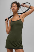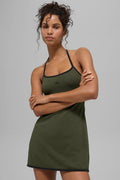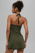 ALO Softsculpt Halter Tennis Dress - Green Olive/Black